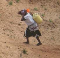 People who cannot afford to buy water have to walk to water holes. Normally women have to walk several km to a water hole and back home with a 20 litres jerry-can (20 kg) of water on their back every second day. This can be observed in both wetter and drier regions as well as in towns. |