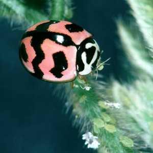 Note that not all ladybird beetles are predators. There are several plant-feeding species such as Epilachna beetles also commonly known as melon bugs. Both the larvae and the adults feed on leaves and fruits. Epilachna beetles are pests of tomato, potato and cucurbits. The pest ladybird beetles can be distinguished from the beneficial ladybird beetles by their appearance. The wing cases of the adults of pest ladybird beetles are covered with short hairs giving them a non-glossy matted appearance. The larvae are pale yellowish in colour and covered with long spines.
