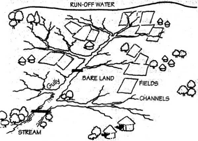 Degradation of a catchment area can have various forms: depletion of water resources, soil erosion and land degradation, impoverishment of the vegetative cover, and damage to the infrastructure. Land degradation is responsible for reduction of the vegetation cover. It can be caused by inadequate land management, overexploitation, and reduced soil fertility, but also by climatic factors. A poor vegetation cover leads to a reduced infiltration rate of the water into the soil and to a loss of water through surface runoff. Surface runoff is one of the reasons for the depletion of water resources on the one hand and for soil erosion on the other hand. Most of the surface runoff is not controlled or effectively used and so lost for the community. In order to profit from the rainwater it has either to infiltrate into the soil and be available for crop and pasture production or be intercepted and actively used for different purposes such as drinking water or water for irrigation. Runoff water also leads to soil erosion and further land degradation, which reduce soil depth and fertility, further reducing the vegetation cover. Erosion is enhanced by excessive exploitative use of the land such as the cultivation of steep slopes without conservation measures, shallow soils, inappropriate tillage, overgrazing, encroachment of forests, etc.