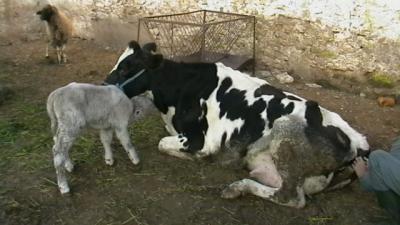 If the cow is found to be lying on her side she should be immediately propped on to her chest. Otherwise she is liable to get bloat or inhale stomach content with the attendant risk of developing aspiration pneumonia. But do NOT use rocks or boulders!
