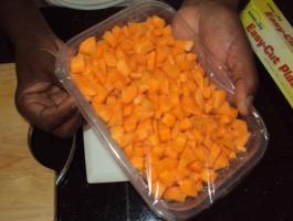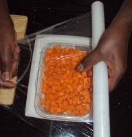Shredded veg are then weighted to a standardised measurement and packed in either plastic bags or plastic punnets.