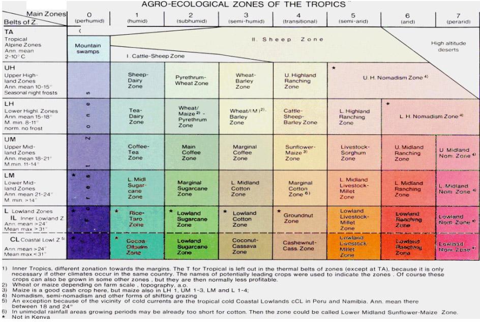 There are several systems for describing Agro-ecological zones in the Tropics. In Kenya two are used: