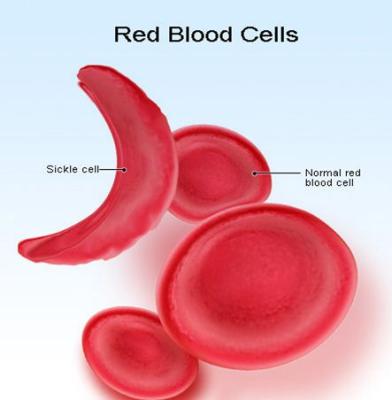 Sickle cell anaemia: Sickle cell anemia is a disease passed down through families in which red blood cells form an abnormal crescent shape. (Red blood cells are normally shaped like a disc.) Sickle cell anemia is caused by an abnormal type of hemoglobin called hemoglobin S. Hemoglobin is a protein inside red blood cells that carries oxygen. Hemoglobin S changes the shape of red blood cells, especially when the cells are exposed to low oxygen levels. The red blood cells become shaped like crescents or sickles. The fragile, sickle-shaped cells deliver less oxygen to the body's tissues. They can also get stuck more easily in small blood vessels, and break into pieces that interrupt healthy blood flow.