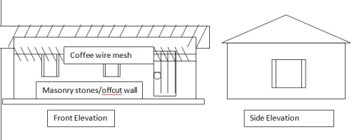 Locally available building materials can be used such as Bamboo, off cuts, timber, stones, mud, bricks etc to build the walls. Avoid walls made from iron sheets as it is difficult to regulate house temperatures. However iron sheets can be used for roofing. Below is a list of houses that a farmer can choose from depending on his financial capability.