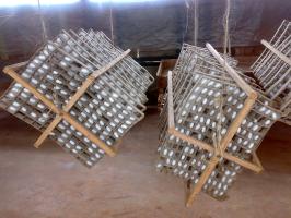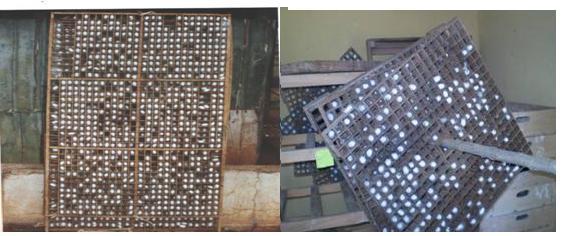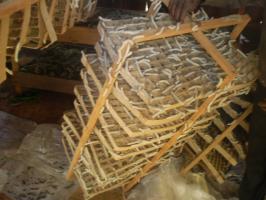 The mature worms are picked from the rearing beds and trasferred to mountages. Care should be taken to put the right number of worms on the mountages to avoid overcrowding and formation of double cocoons.