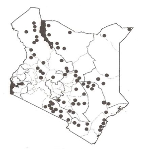 | Distribution of Cordia sinensis in Kenya |