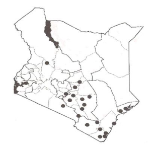 | Distribution of Dalbergia melanoxylon in Kenya |