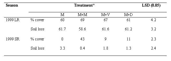 Table: Cumulative soil loss (t ha-1) and percent crop cover two weeks after the on-set of the rains during the experimental period.