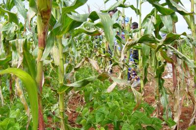 Intercropping of green manure legumes with maize is feasible for the regions receiving bimodal rainfall where farmers plant two maize crops in a year. In this system green manure legumes are either planted at the same time with maize or planting is delayed by one to two weeks to reduce competition. The legume is planted in between maize rows. After the maize is harvested, the legume is left to continue growing during the short fallow period preceding land preparation for the following crop. As the land is prepared, the legume biomass is incorporated into the soil.
