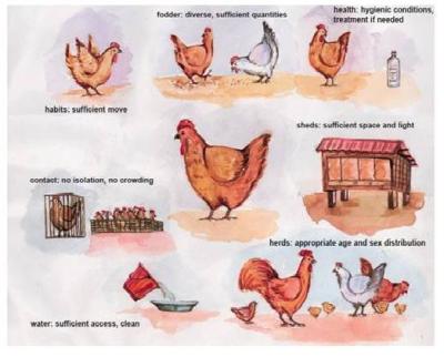 - Disease prevention must be based on breed selection, husbandry, high quality feed, free range conditions allowing regular exercise and appropriate stocking densities;