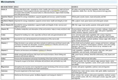 | MICRONUTRIENT | ROLE | SOURCE |