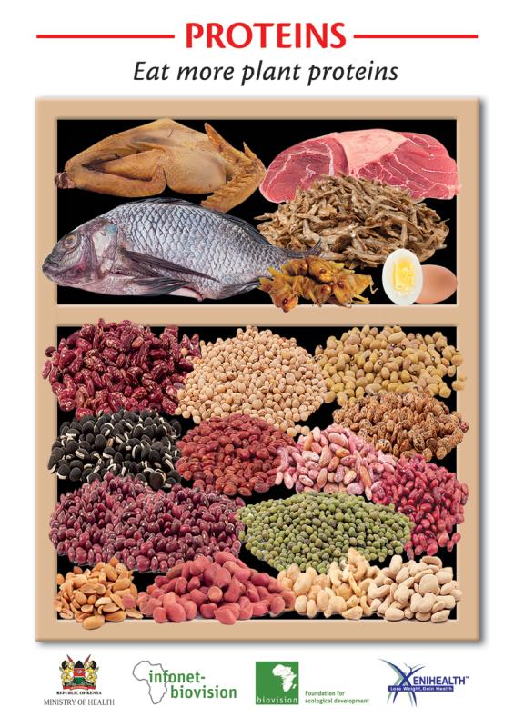 - Plant proteins: Beans, Peas,Nuts, Mushrooms