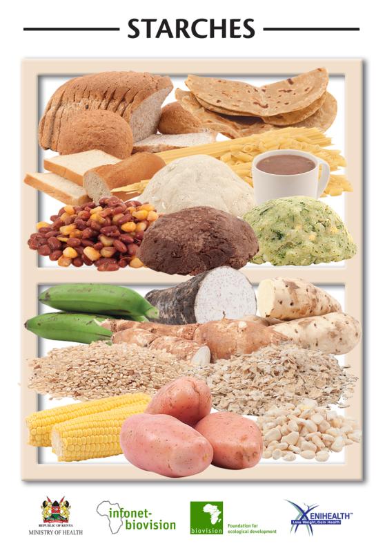 Sometimes, they are in their complex forms as starches such as potatoes, maize, wheat, rice, oats, cassava, arrow roots, sweet potatoes.