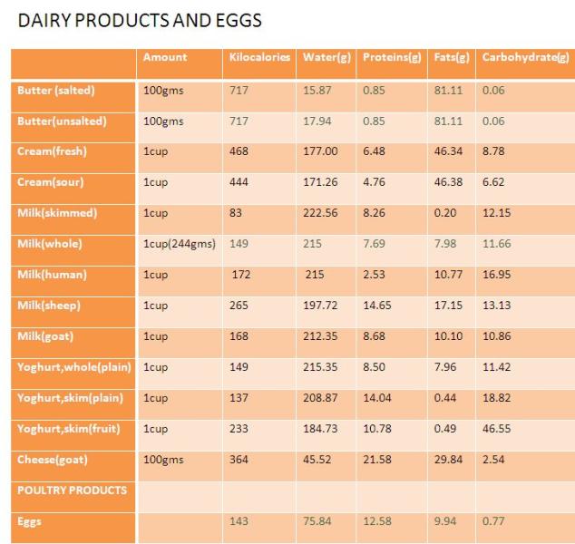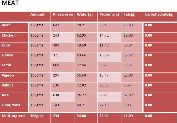 - Animal proteins: Beef, Mutton, Goat meat, Pork, Fish, Camel meat, Chicken and Eggs
