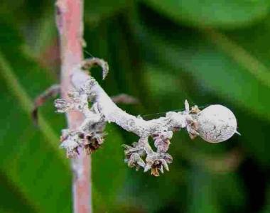 Even though there are several types of powdery mildew fungi, they all produce similar symptoms on plant parts. Powdery mildews are characterised by spots or patches of white to greyish, talcum-powder-like growth. Tiny, pinhead-sized, spherical fruiting structures that are first white, later yellow-brown and finally black may be present singly or in a group. These are the cleistothecia or over-seasoning bodies of the fungus.