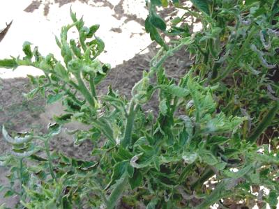 Tomato yellow leaf curl virus. Note thickened shoots.