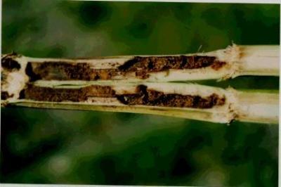 The presence of this species in older crops and in crop residues may be detected by taking random samples of stems or stools for dissection.