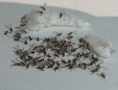 This wasp was imported, mass reared in the 90's, and subsequently released in East and Southern Africa. Cotesia flavipes locates the stemborers while the stemborers are feeding inside the plant stems. The wasp lays about 40 eggs into a stemborer. Upon hatching the larvae of the parasitic wasp feed internally in the stemborer, and then exit the stemborer and spin cocoons.