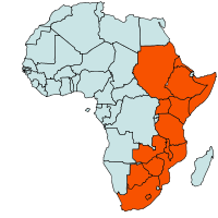 | Geographical Distribution of the Spotted stemborer in Africa (red marked) |