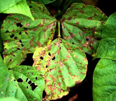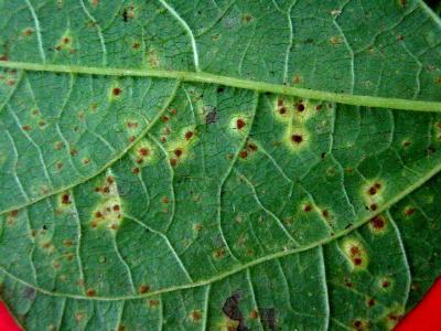 Bean rust on upper leaf surface