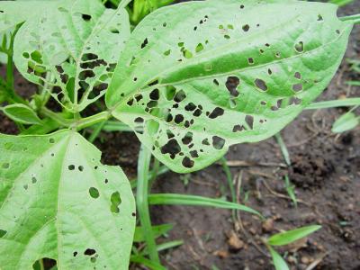 Foliage beetles damage on French beans