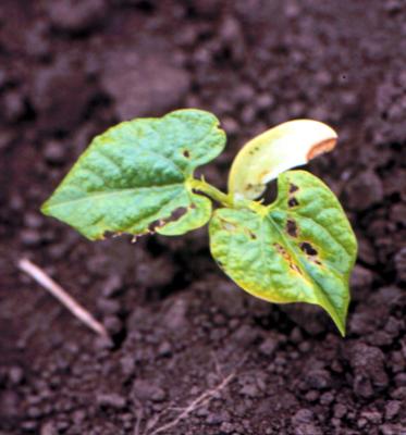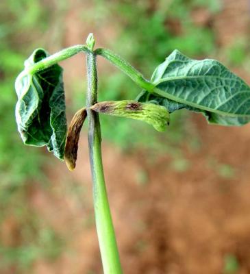Anthracnose on young French bean plant