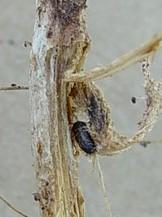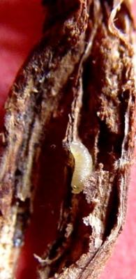 Bean fly pupa in a French bean stem.