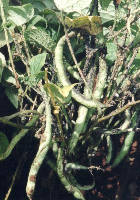 French bean pods with powdery mildew.