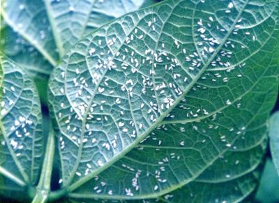 Whiteflies on French beans.