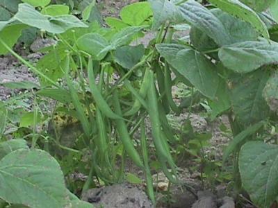 French bean plants damaged by larvae of the stripped bean weevil.
