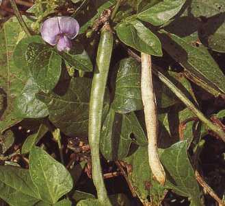 Cowpea (Vigna unguiculata) - Flower, pods and leaves.