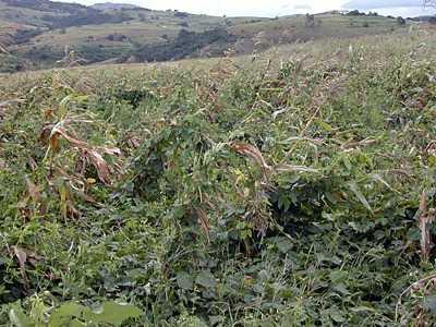 Cowpea being grown as a cover crop in a conservation agricultural project in Swaziland. This vigorous biomass production is ideal for this farming method forming mulch to improve soil fertility and restrict weed growth.