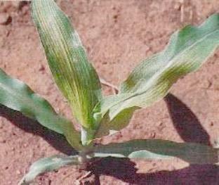 Streaked foliage damage caused by maize leafhopper (Cicadulina mbila)