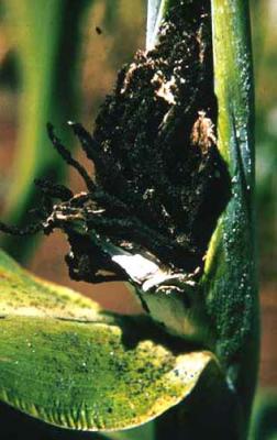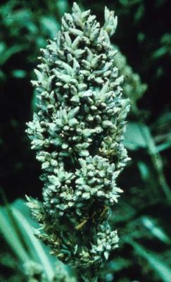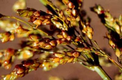 Sorghum ergot (Claviceps africana). Syrupy honeydew covering inflorescence of male-sterile forage