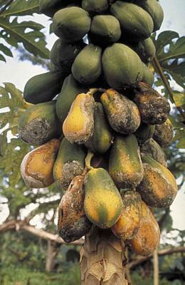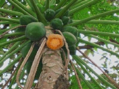 Pawpaw (Carica papaya) - Tall plant with mature fruits.