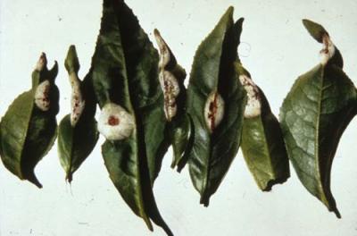 Blister blight on tea leaves