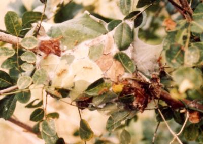 Weaver ant nest on bush growing in the surroundings of a coconut plantation