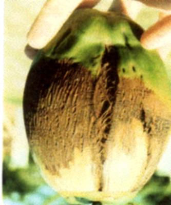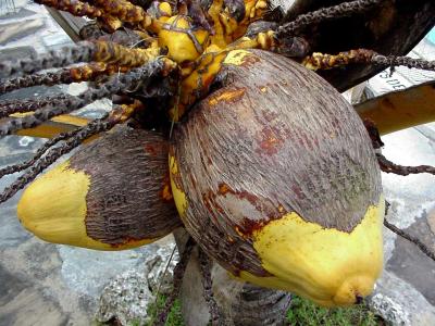 Damage by the coconut mite. Note splitting of the husk due to mite attack.