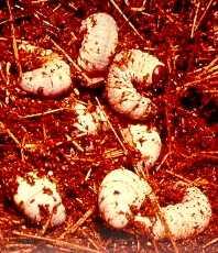 Grubs of the rhinoceros beetle. Grubs live and feed in dead coconut logs.