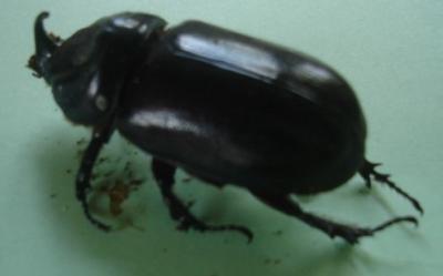 Rhinoceros beetle. Real size: 3.5-5 cm long