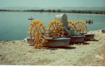 A paddle wheel aerator in a fish farm in Israel.