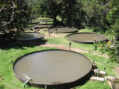 Circular trout tanks in Kenya