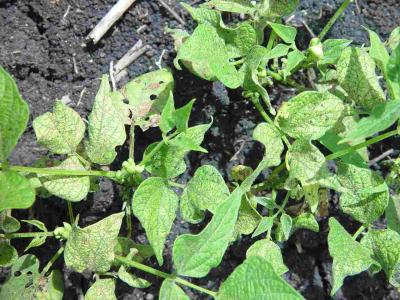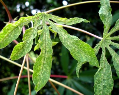 Mononychellus tanajoa - Green spider mite damage on cassava