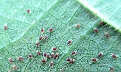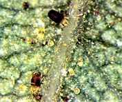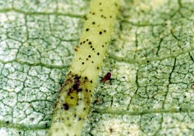 Spider mites on cotton leaf, they are very tiny (they rarely exceed a size of 0.5 mm).