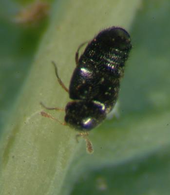 Adult of the predatory beetle Oligota sp. a natural enemy of mites.
