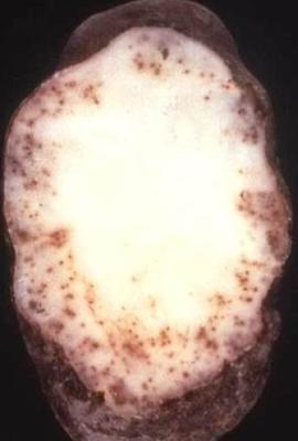Root-knot nematode (Meloidogyne incognita) damage to potato.