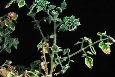 Tomato yellow leaf curl virus. Note thickened shoots.