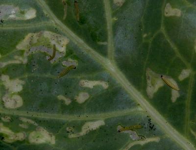 Diamondback moth - Young caterpillars and their damage on kale.