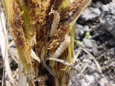 Damage of stemborer caterpillar