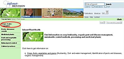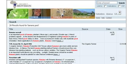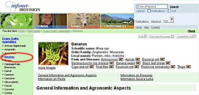 For searching all infonet contents enter any keywords (e.g. 'banana pest') at the field on the right corner and click with your mouse pointer to 'Search'.